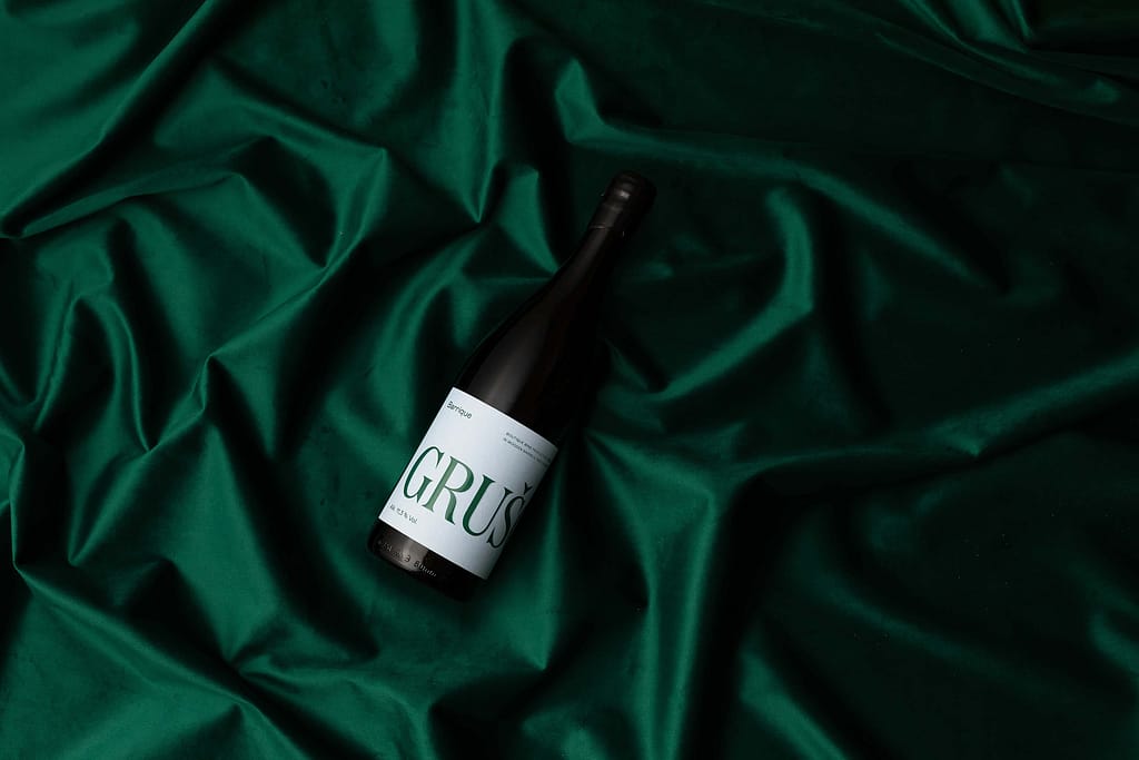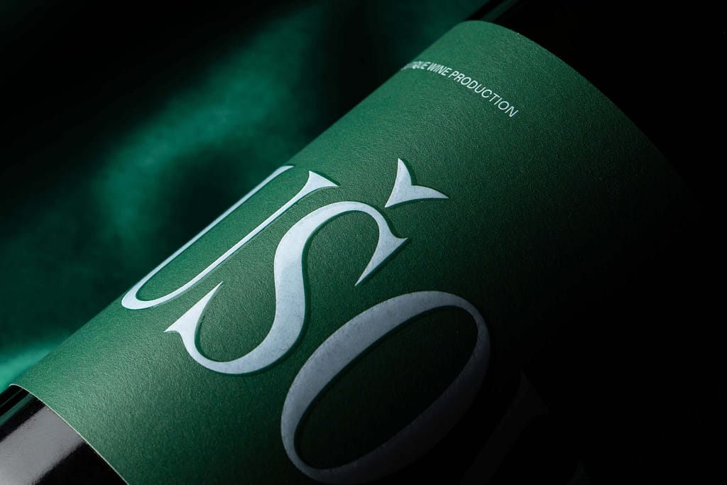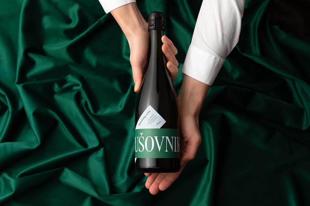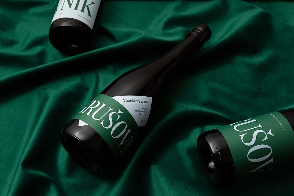 This is a small-scale producer still breaking into the market, so we were looking for a fresh approach that would boost their visibility and improve brand recognition. Their Barik label contains the fairly long brand name in large letters, so the full name can only be read by rotating the bottle. This turns the winemaker’s name into the central image on the label. Other information on the label is arranged nontraditionally, creating a dynamic end result. The wider bottle used for the sparkling wine allowed us to design a label of nontraditional dimensions. We expanded the core layout of the Barik label with additional text. This element makes it easy to distinguish between the two series. The color palette is green and light blue, which looks fresh and modern, and is at the same time not too invasive due to the subdued tones. We finished the label with a UV varnish for additional premium effect.